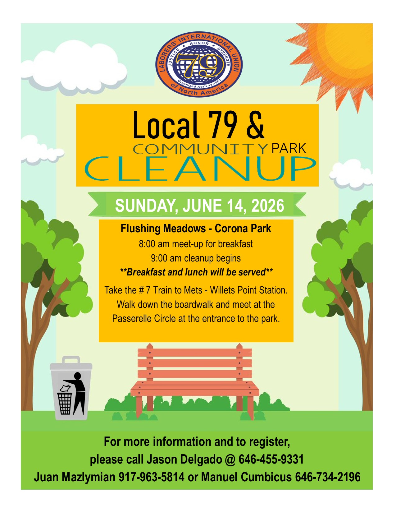 What: Join members of Local 79 to help clean up Flushing Meadows-Corona Park in Queens.When: Sunday, June 14, 2026 – Breakfast at 8:00 am. Cleanup project begins [...]