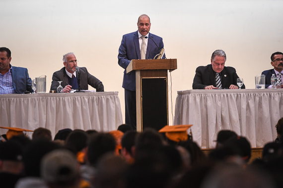 Our April Membership meeting opened with over a hundred apprentices walking down the aisle and shouting in unison “Who are we? Seventy-nine!” to loud cheers and rounds of applause from their Local 79 brothers and sisters. Business Manager Mike Prohaska then led all apprentices in the Oath of Membership with all graduates swearing “to fight for the cause of all working men and women.”