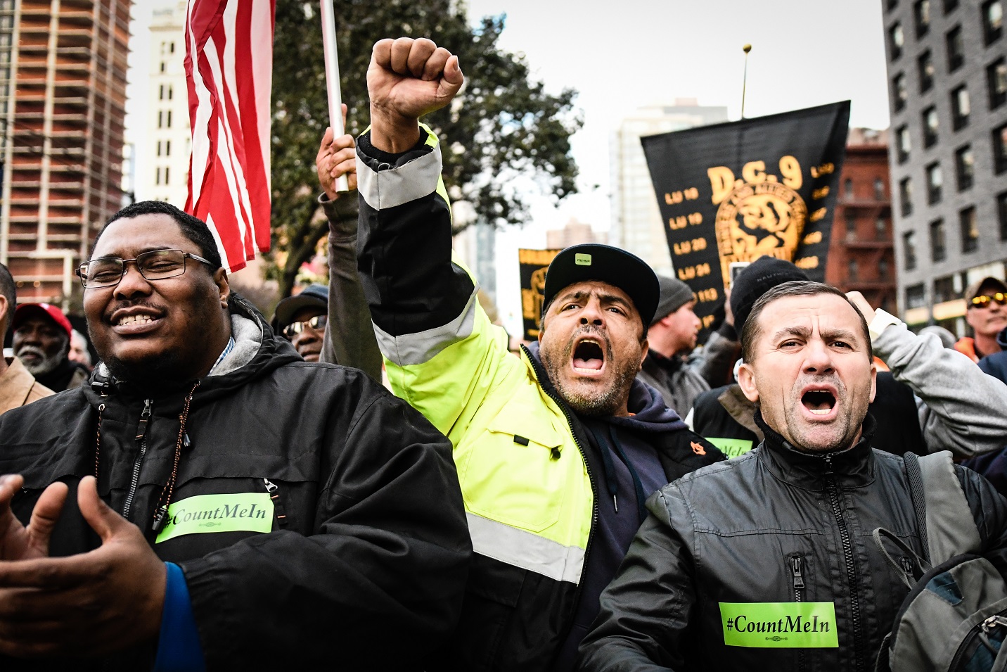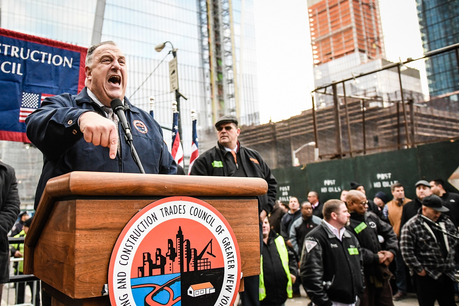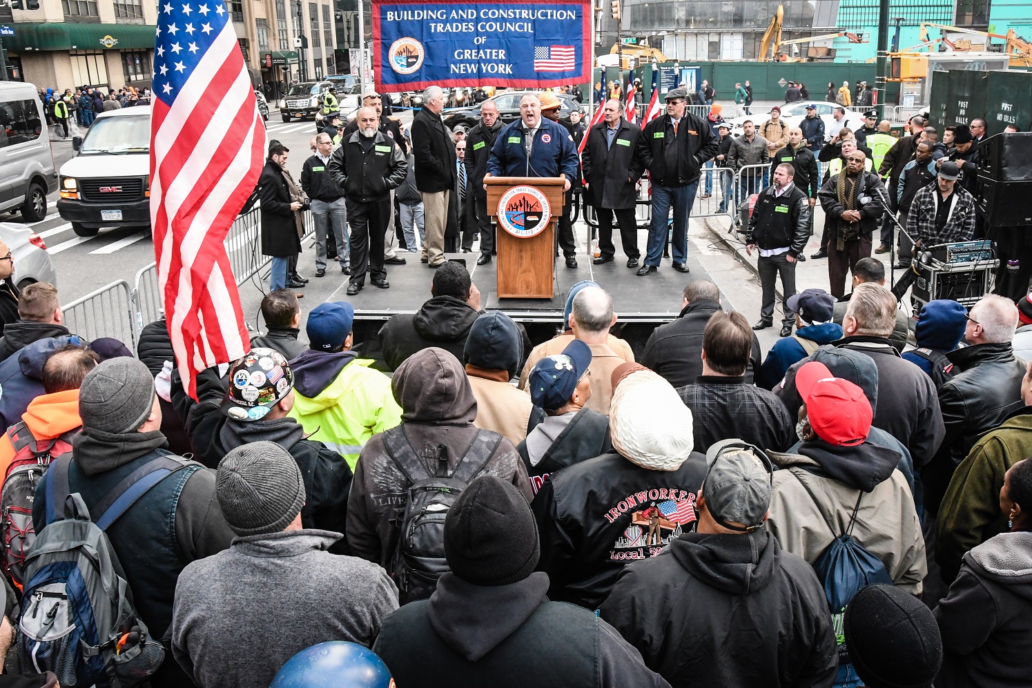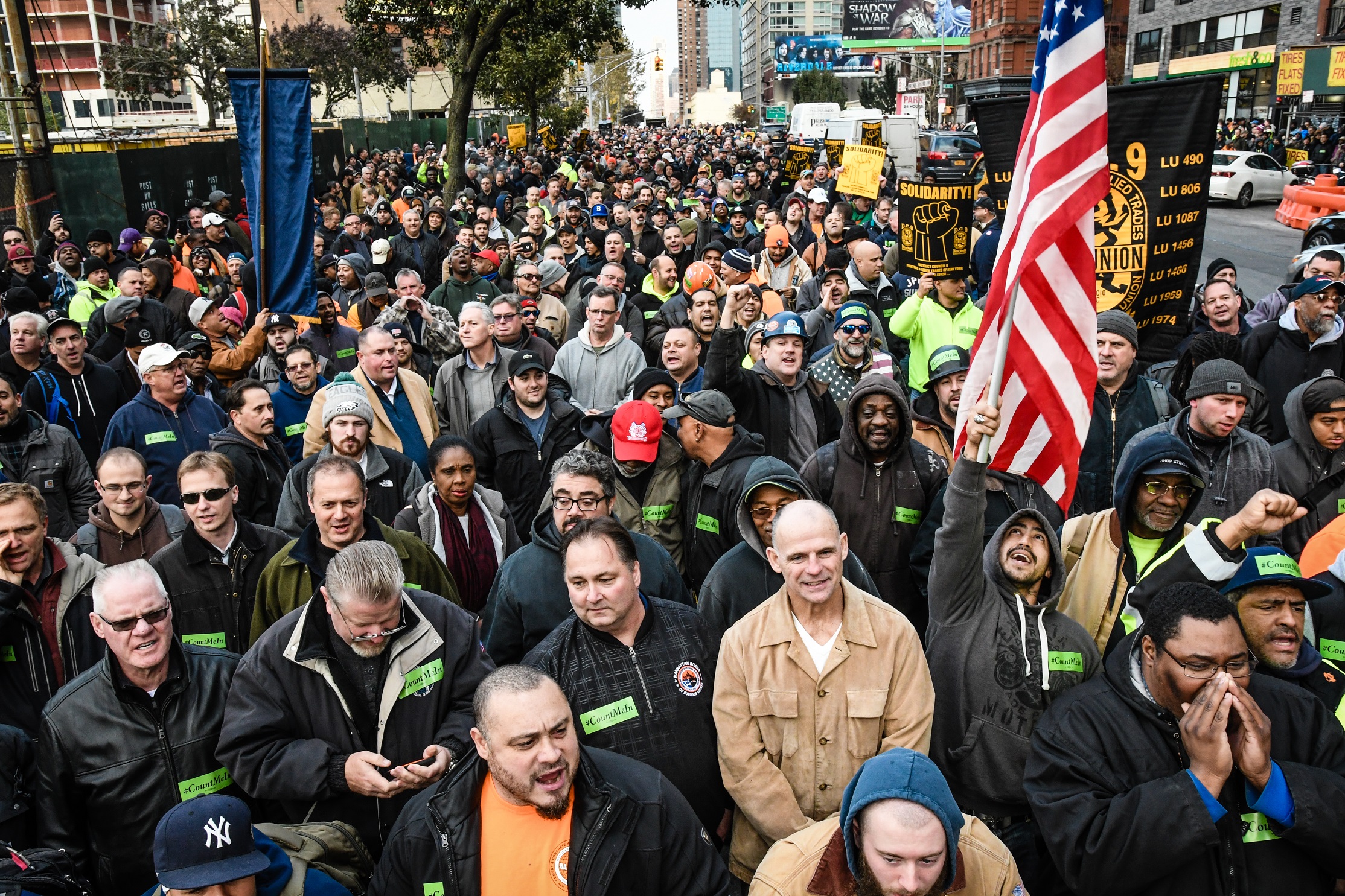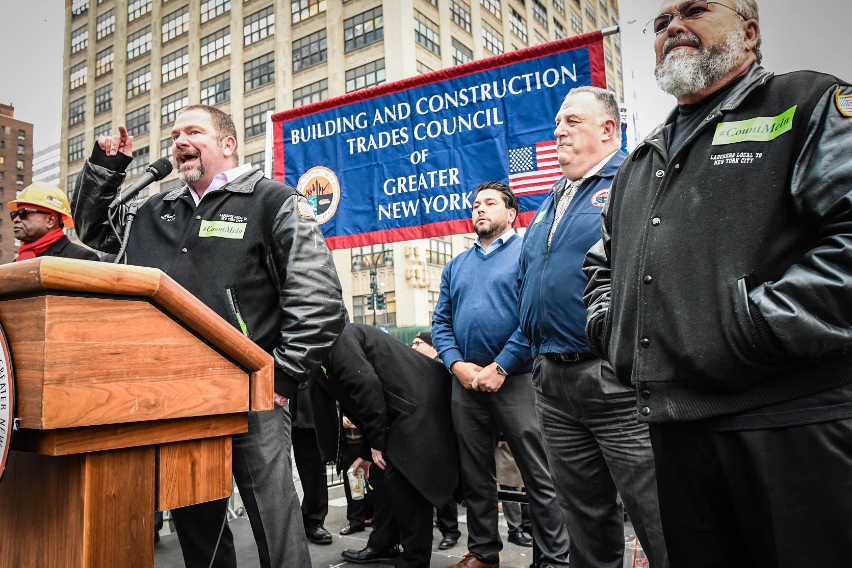Thousands of Building Trades members came together after work on November 14th to speak out against Open Shop in NYC. Gary Labarbera, President of the Building Trades, lead proceedings and emphasized that we are stronger when we stick together. District Council Business Manager Bobby Bonanza and other Building Trades leaders also spoke of the importance of union solidarity and all repeated to the crowd that you can “Count Me In!”