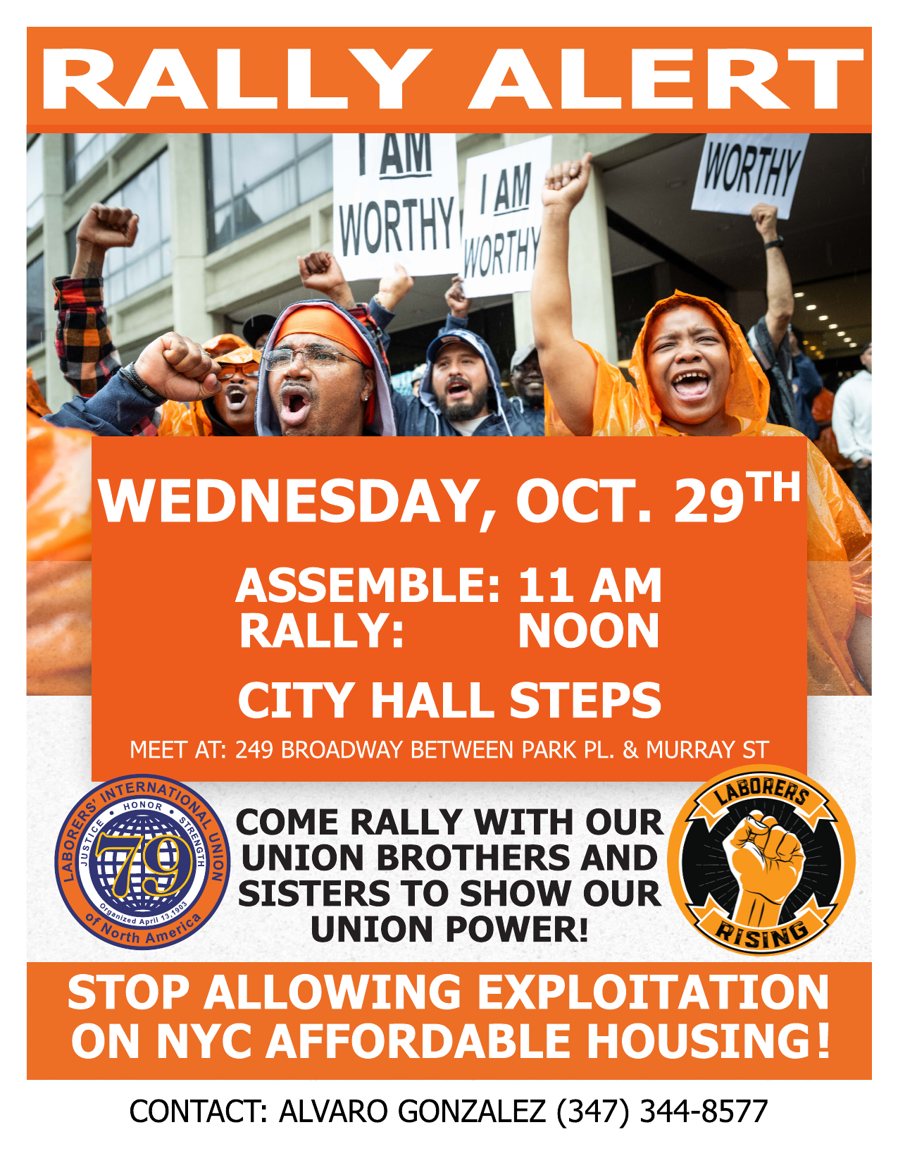 Come rally to support the Construction Justice Act at City Hall Steps!! Meet us at beginning at 11am for a Noon rally on Wednesday, October 29th.