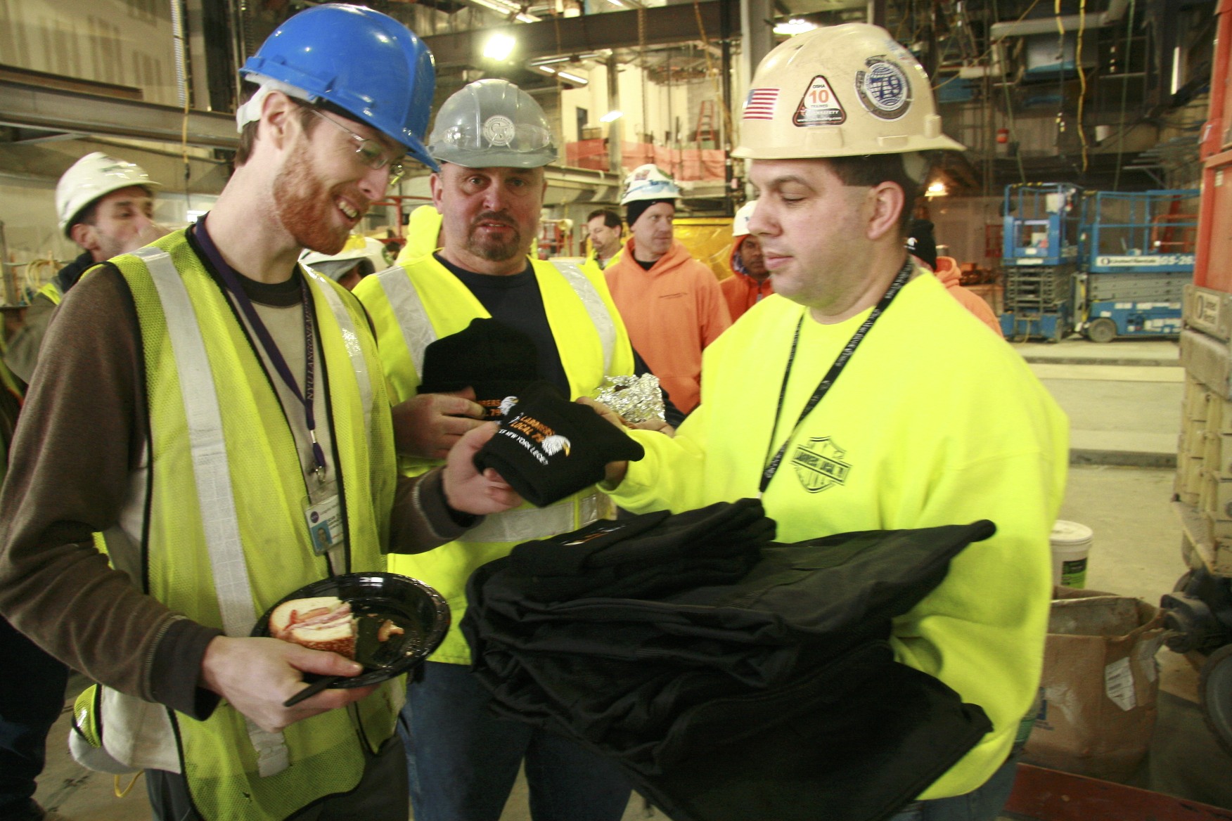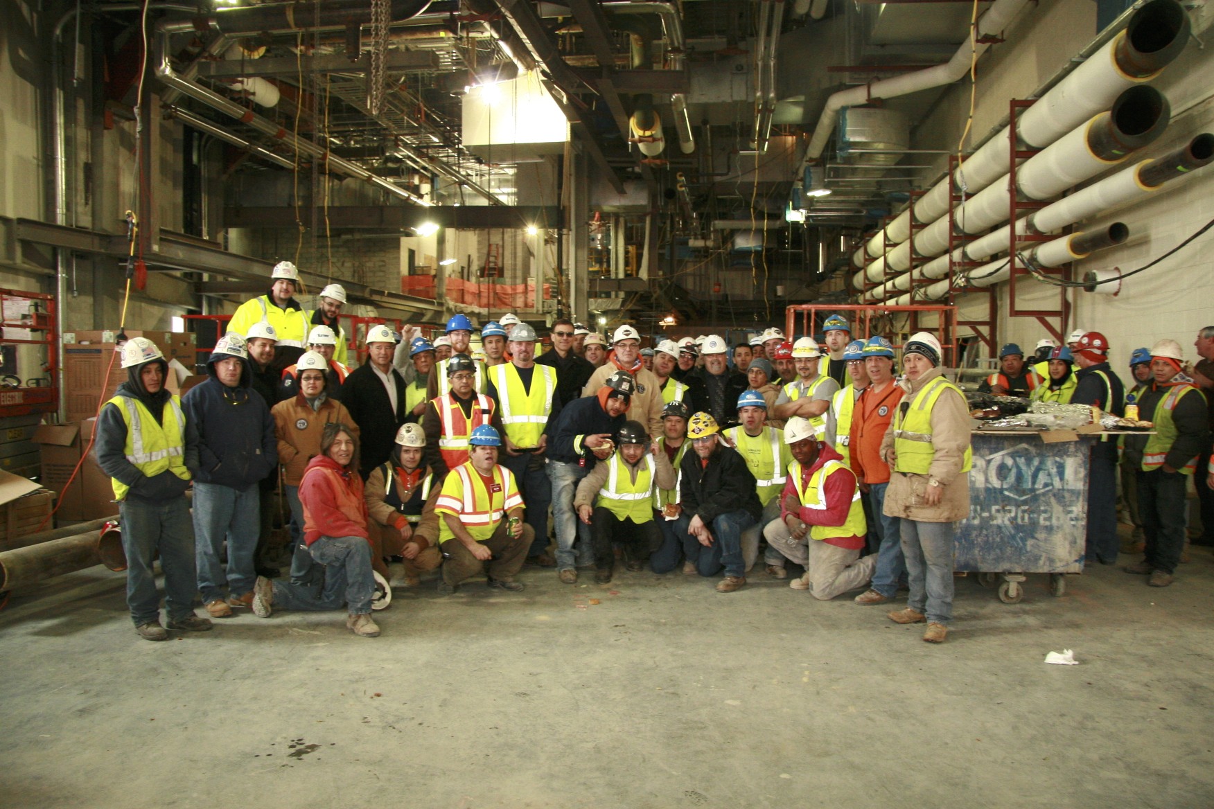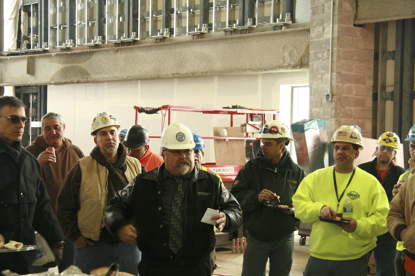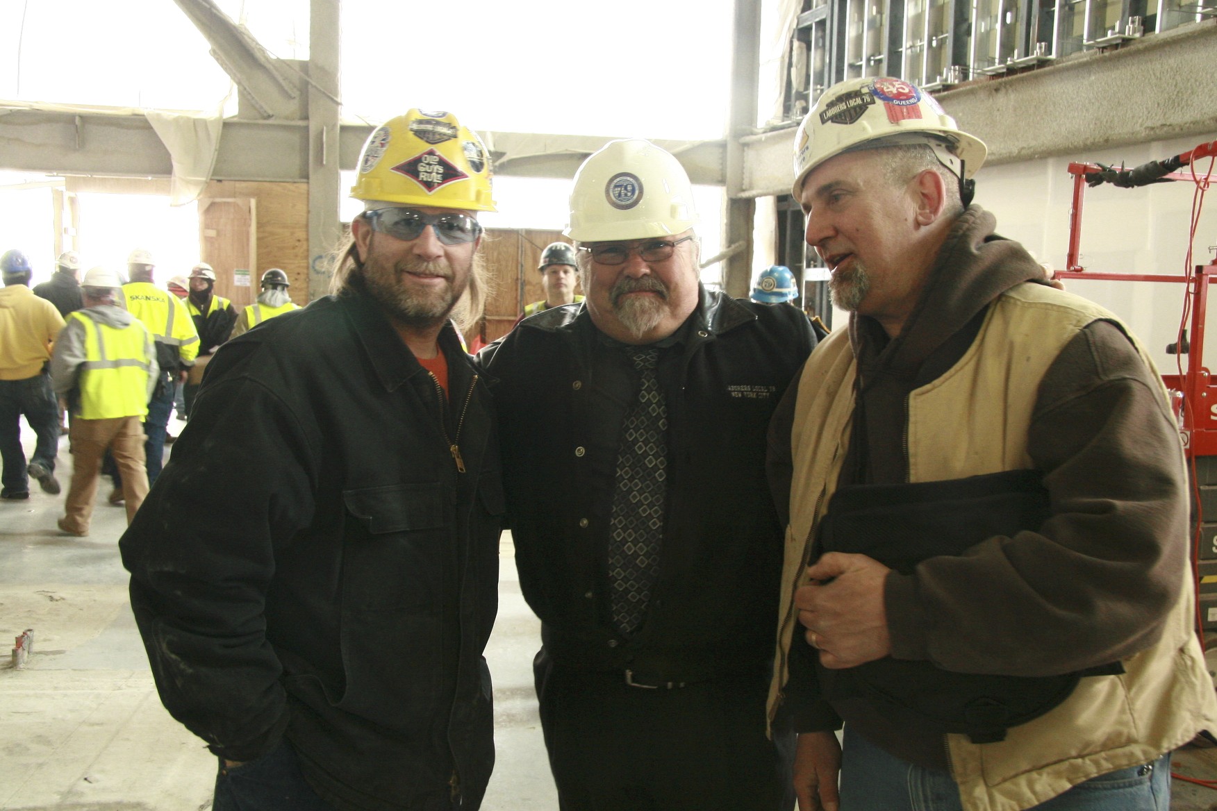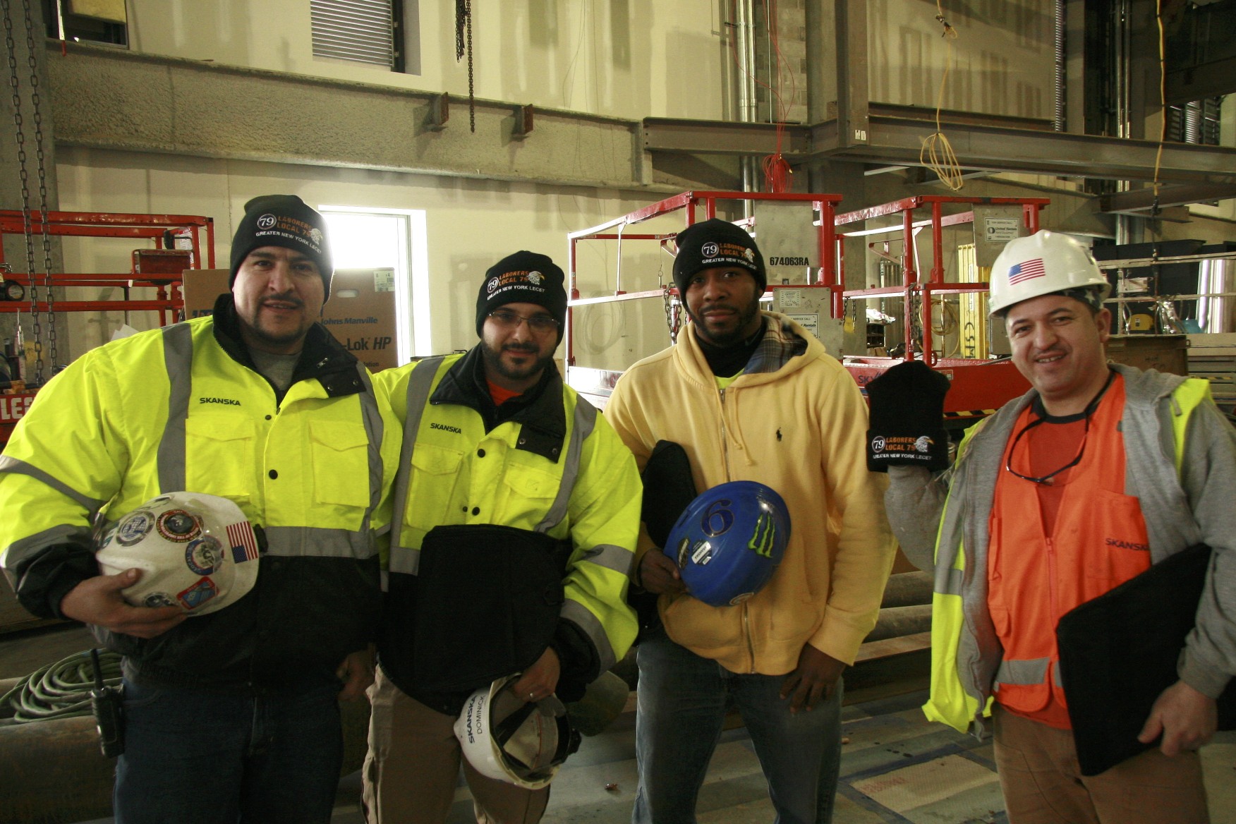 Local 79 members, Executive Board officers, and Greater New York LECET staff join with contractors at the expansion of the New York University Langone Medical Center in midtown Manhattan on February 27, 2014.