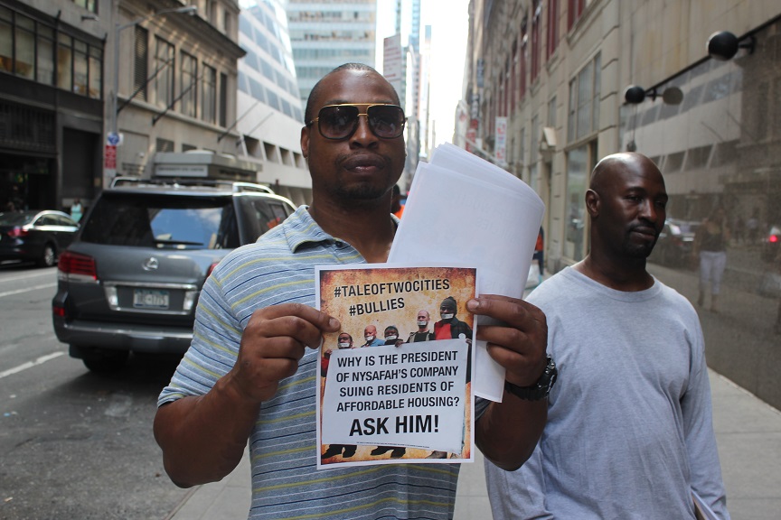 The street theater event was organized to call attention to a number of crimes and violations committed by NYSAFAH contractors, including wage theft, sub-standard construction, and safety violations and to call attention to the subsidies provided to these rat contractors by the people of New York City.