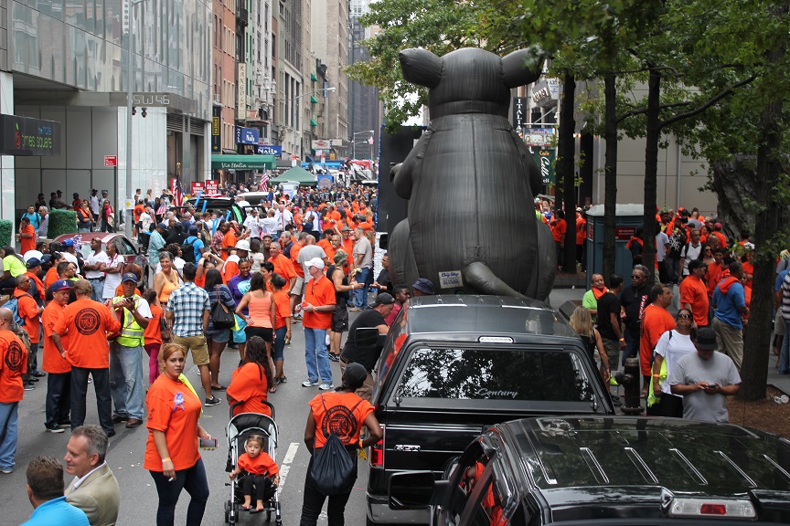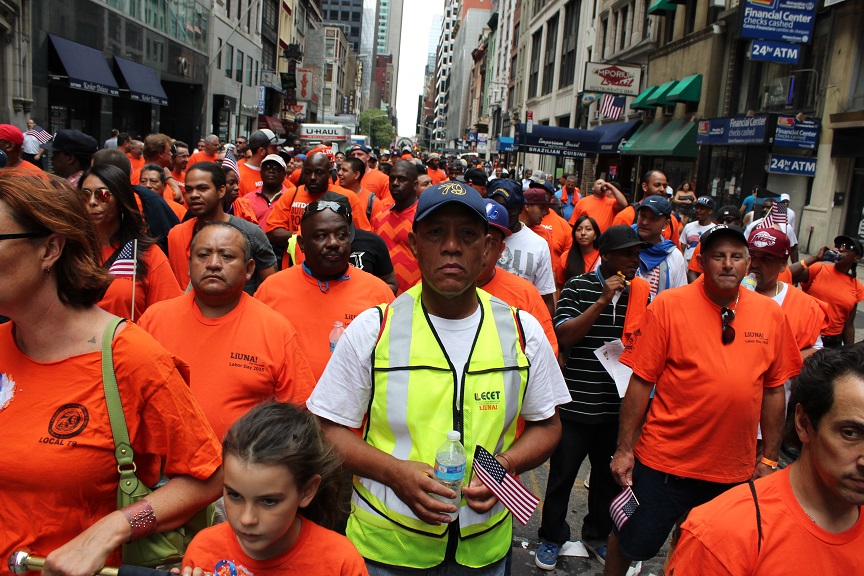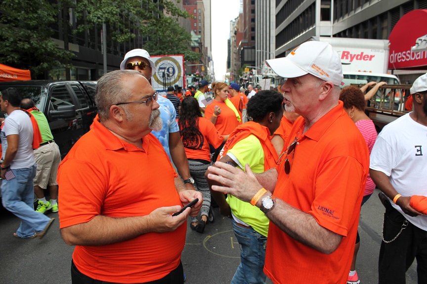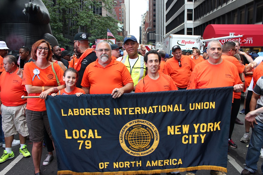 On September12, over 500 Local 79 members joined thousands of members of other labor unions throughout New York City as they marched down Fifth Avenue in a spirited celebration of Labor Day. Throngs of onlookers lined the streets as cries of “Whose City? Our City” echoed off the buildings while a sea of Local 79 workers in LiUNA orange t-shirts proceeded up the corridor. It was by far the largest Local 79 turnout ever for this annual parade.