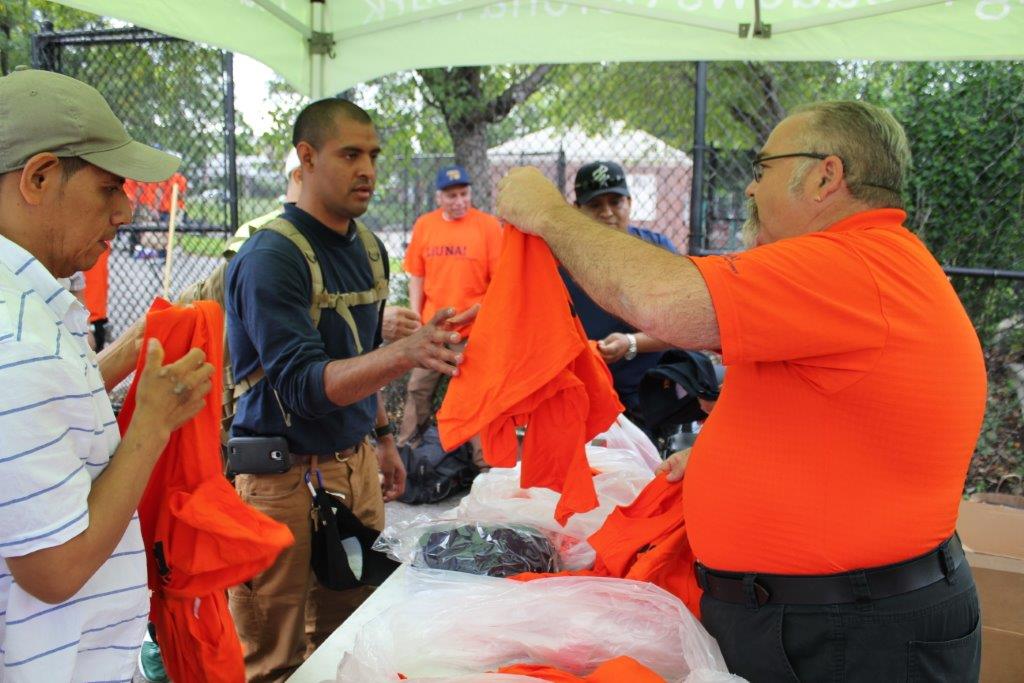 - Local 79 Business Manager Mike Prohaska handing out shirts to members