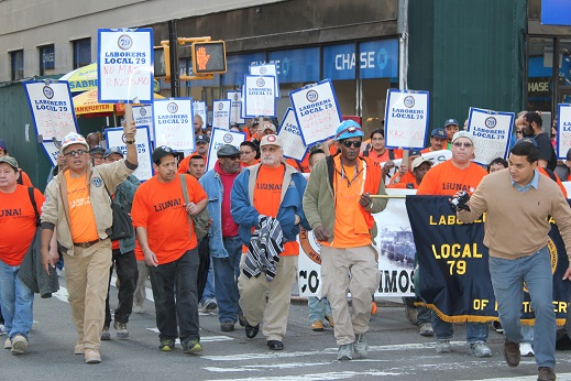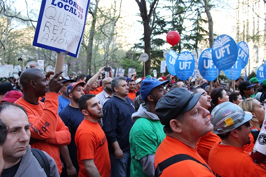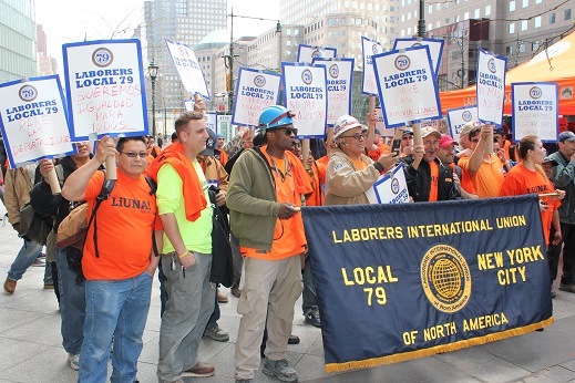 Hundreds of Local 79 members joined well over a thousand workers from various unions to celebrate May Day 2014 with a rally near New York City Hall. Under beautiful sunny skies, labor leaders and politicians spoke about the ongoing struggles faced by working people in New York City. Many spoke of the continuing struggles of working people in an economy that has increasingly seen the largest share of income go to the 1%. At the same time, many speakers voiced optimism that the climate in New York City for working people and unions has changed due to the election of a new mayor.