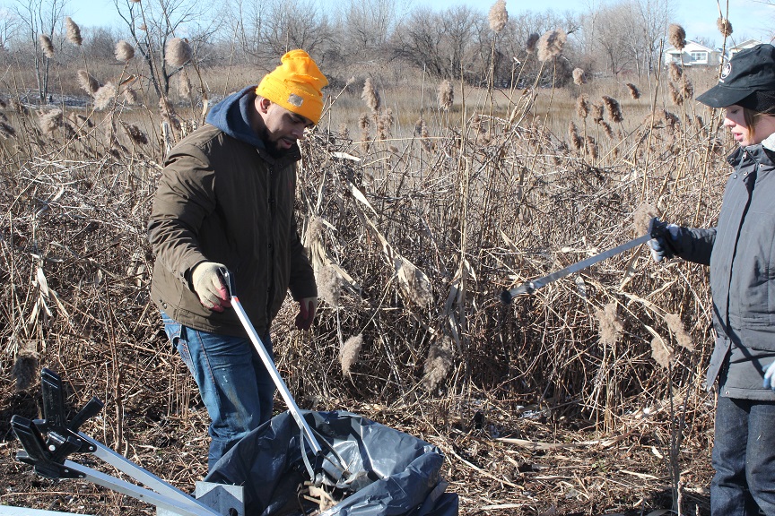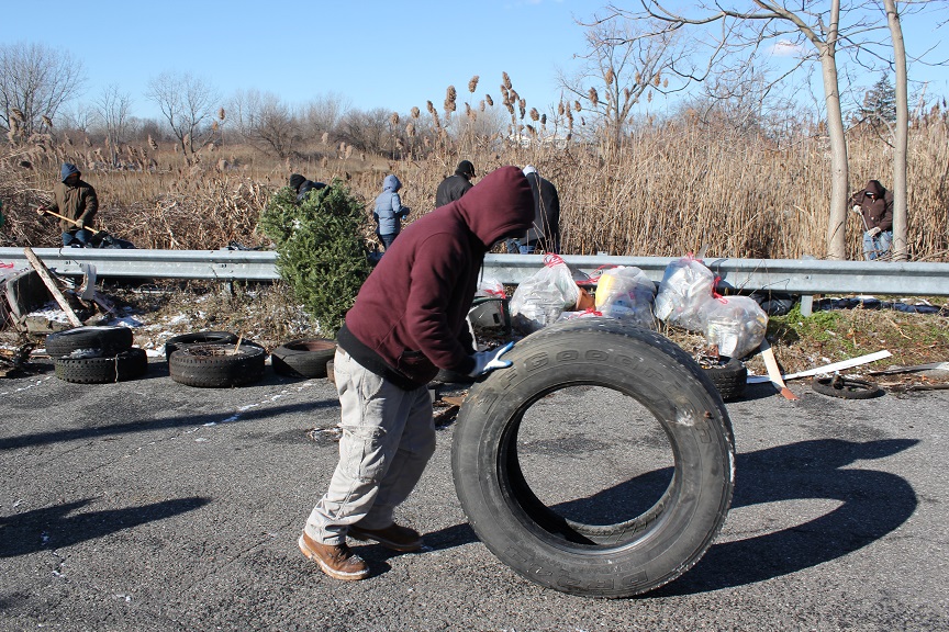 January 18 was a bitter cold and windy day near the shore, but this did not deter Local 79 apprentices-in-training and staff members from Local 79 and LECET from carrying out a service project at Idlewild Park Preserve in Queens.The service project, organized by the New York City Parks Department, involved removing all manner of debris–tires, discarded rugs and furniture, building materials, and mountains of bottles, cans, and trash–from sensitive wetlands The volunteers also received a lesson about wetlands and their importance in maintaining coastal ecosystems and absorbing storm surges. “We always look forward to having our apprentices-in-training carry out service projects like this,” said Mason Tenders’ Training Fund Apprenticeship Coordinator Timmy Warrington. ‘Members of Local 79 are involved in volunteer work throughout the year in their communities, and it is important that our apprentices not only get the necessary skill training to be Laborers, but also understand the importance of giving back to their community.”